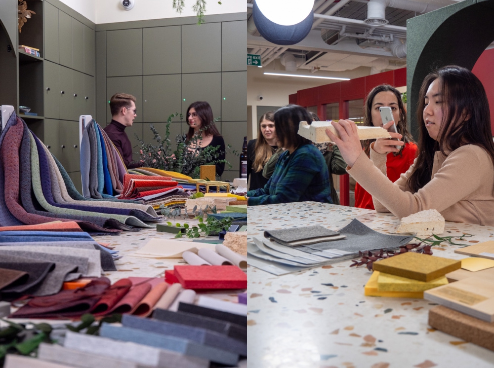The Design Centre’s material bar was a showcase of color through fabrics and finishes. Guests could see, touch and feel recently launched materials from Kvadrat, investigate the emerging sustainable masterpiece, Mycelium and create their own mood boards to compete for a prize!