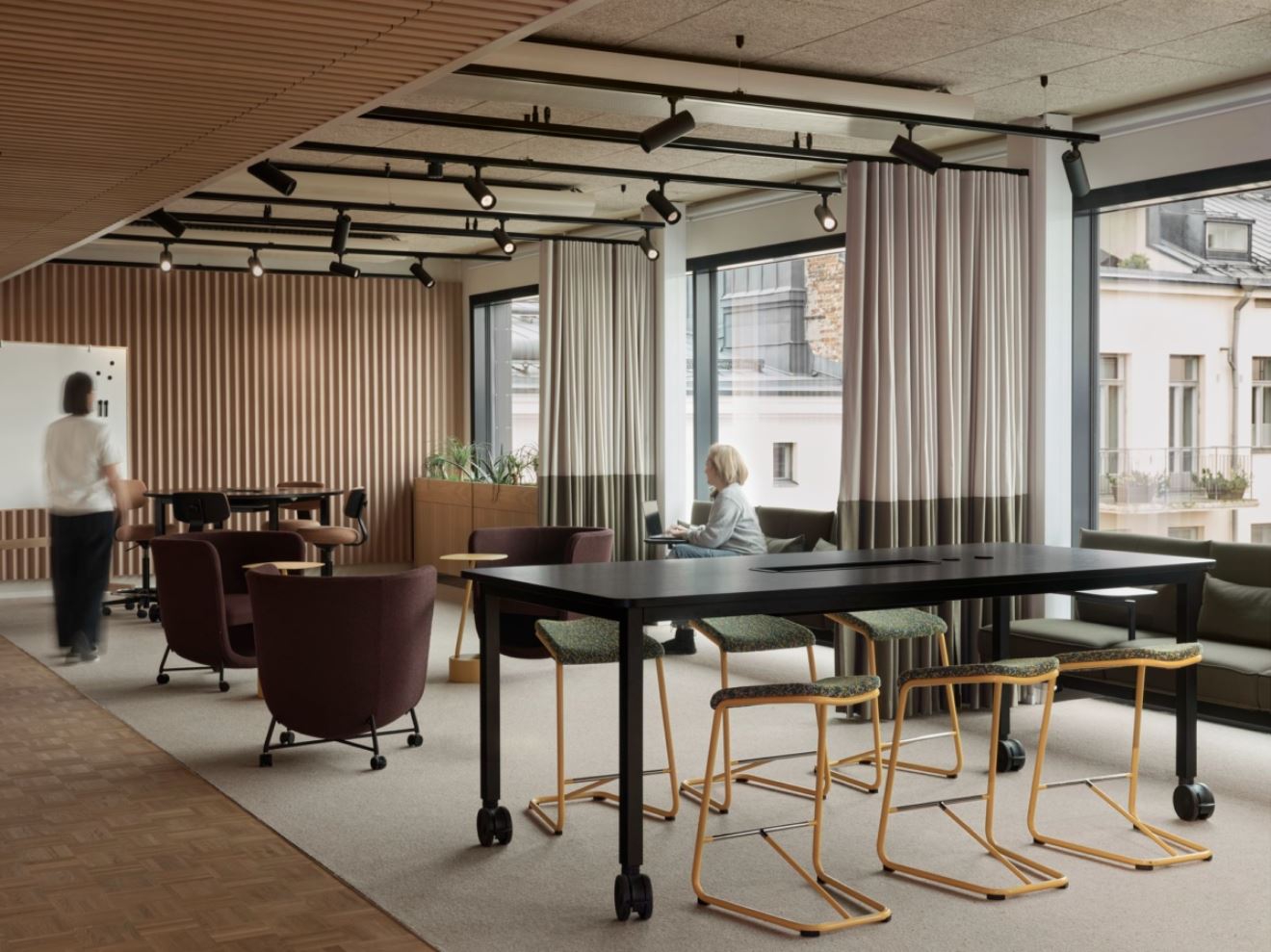 Fyra was given a challenge to create a first-class employee experience through flexible spatial solutions, cutting-edge technology, and bringing a focus on well-being and sustainability as primary drivers. The workplace, comprising two existing buildings from the 50’s and 60’s merged with two newly constructed floors, underwent a comprehensive, two-year renovation. The premises’ design integrates layers and diversity by unifying classical elements with modern details.