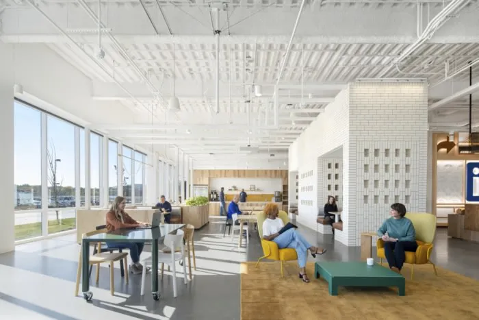 Gensler formed a balance of industrial and chic drawing on the ample natural light to complete the LinkedIn offices in Omaha, Nebraska.