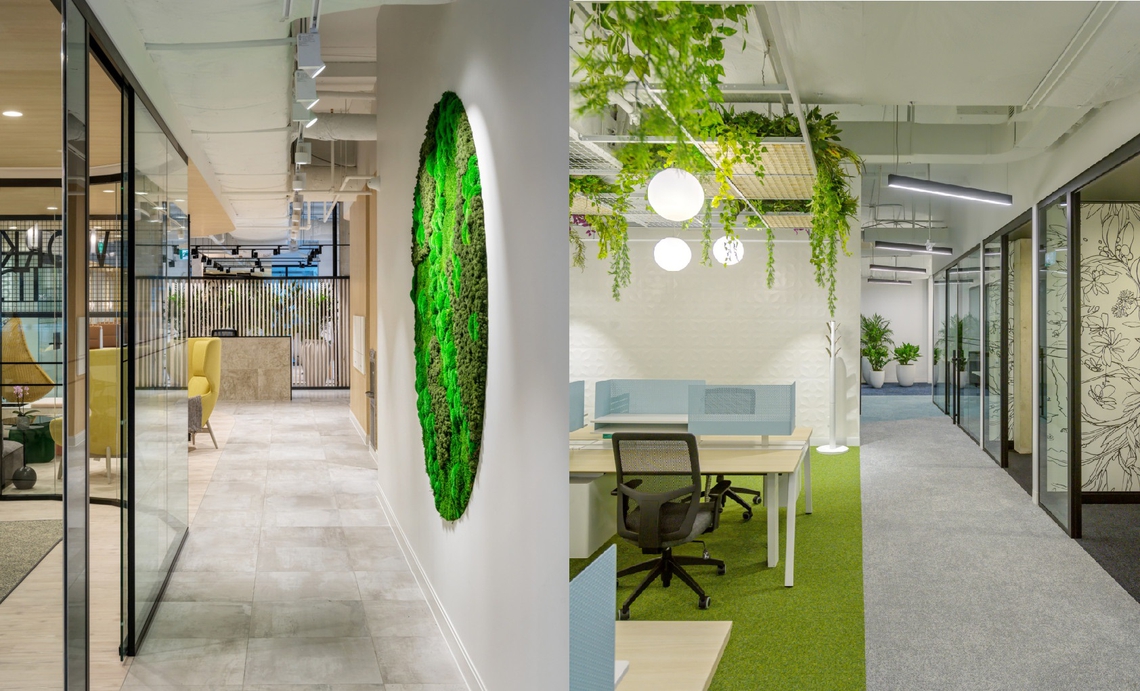 In order to create a seamless synergy with nature and natural elements, they adopted the biophilia principle by incorporating extensive greenery throughout the walls, ceiling and freestanding elements, further promoting a sense of sustainability within the space. Adding special furniture to the patio provided the user with ease of accessibility to indoor and outdoor environments, without having to leave the premises-bringing to life both a literal and figurative connection to nature. To further cultivate a sense of aesthetic appeal and fluidity within the space, an economical carpet was installed in a unique pattern that mimics nature’s natural organic forms.