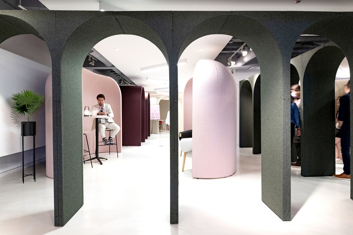 Delivering that experiential space and a ‘New Landscape for Work’ is Aeonica, developed in collaboration with Gensler as product design consultants. Inspired by timeless architectural forms, this new, ground-breaking ‘micro architecture language’ provides an interior landscaping and space-making toolkit for the workspace. During the show, it caught the attention of many media outlets, including ThinkLab and Mortarr.