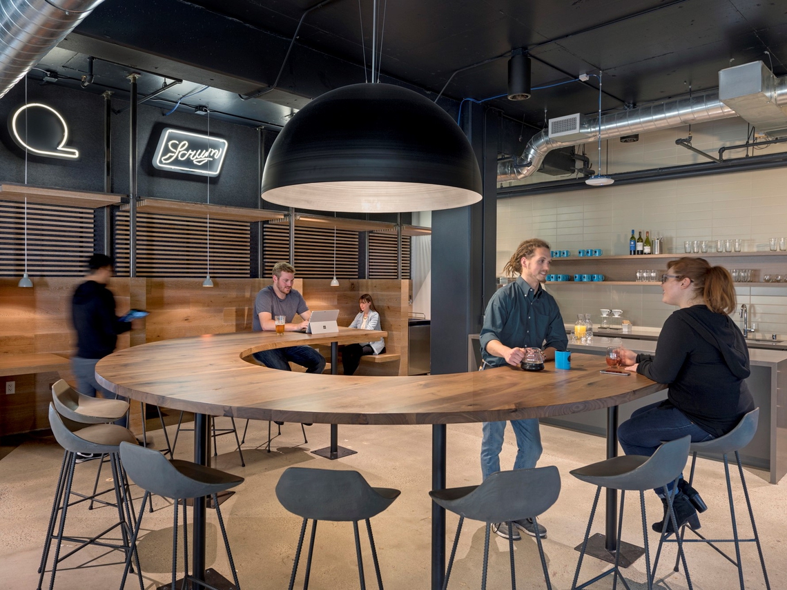 When designing a workplace, neighbourhoods and communities create a sense of belonging, especially when these neighbourhoods are more than just a group of cubicles and conference rooms and instead include agile solutions and flexible interaction for collaborating across teams. Integrating clear wayfinding and incorporating planning concepts such as landmarks, nodes, and edges provide a framework for neighbourhoods. Zoning with modular furniture can go a long way to accomplishing this, and gives flexibility in reconfiguring and adapting as the workplace evolves. You can read more about Designing For A Flexible Workplace in one of our previous articles.
