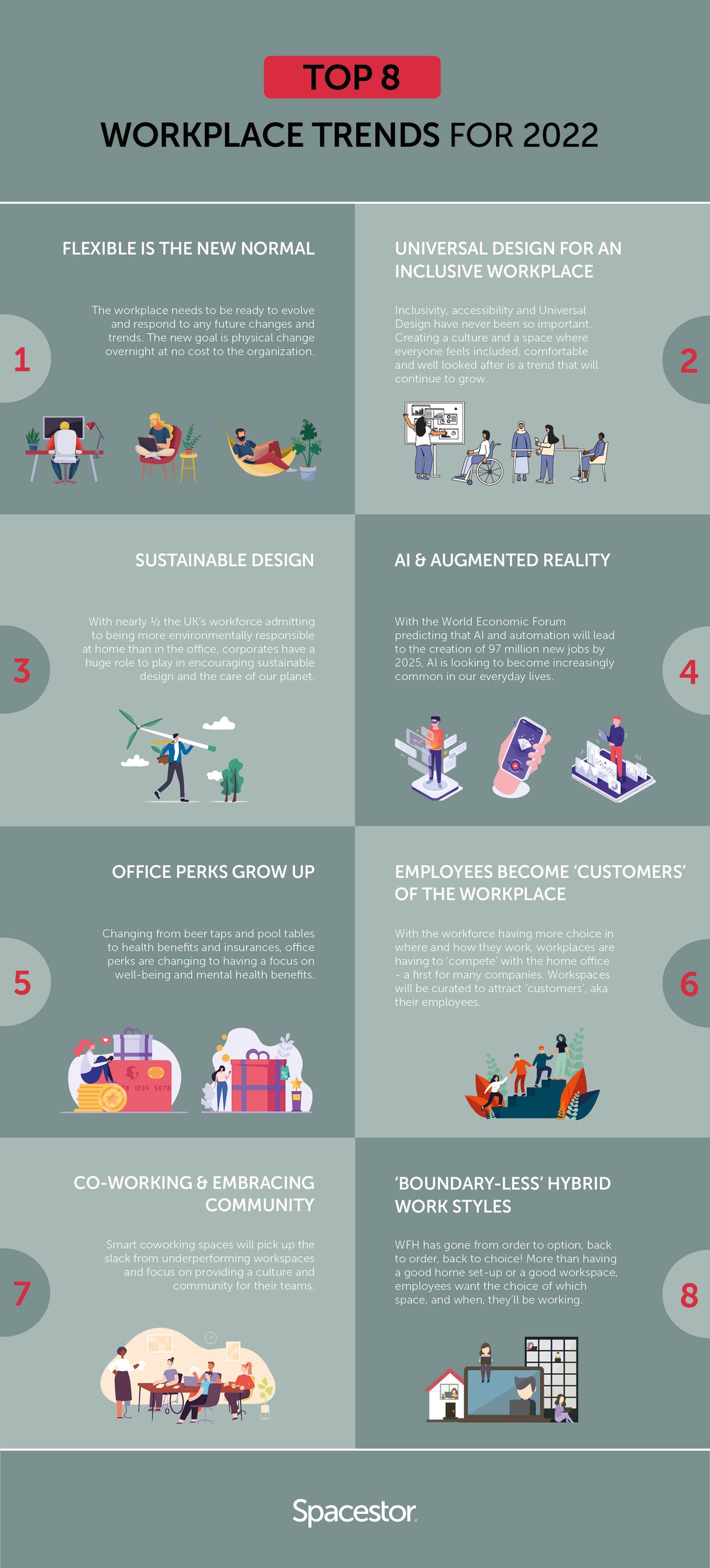 So, here at Spacestor, we’re sharing our top 8 workplace trends for 2022.