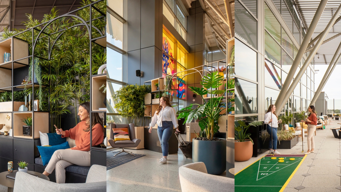 Chase Sapphire Lounges in Austin-Bergstrom International Airport reflects Austin’s pulse of boldness, eclectic shades and rich connection to nature. The lounge’s design by Corgan pays tribute to the location’s spirit through vibrant colors and art, including large glass murals of Texas wildflowers.