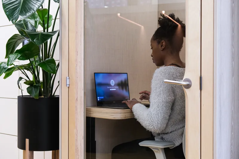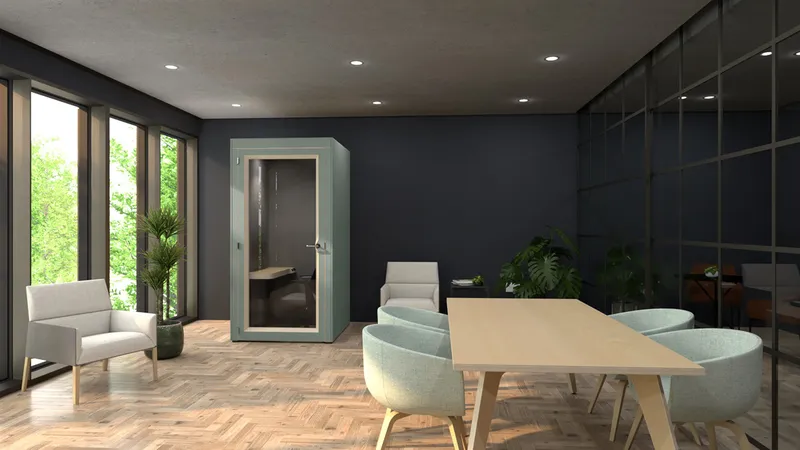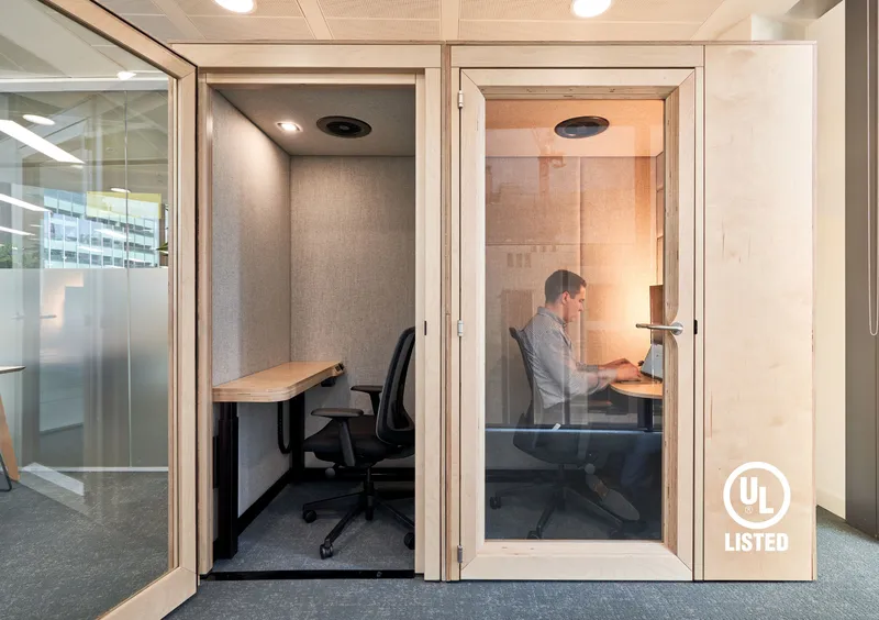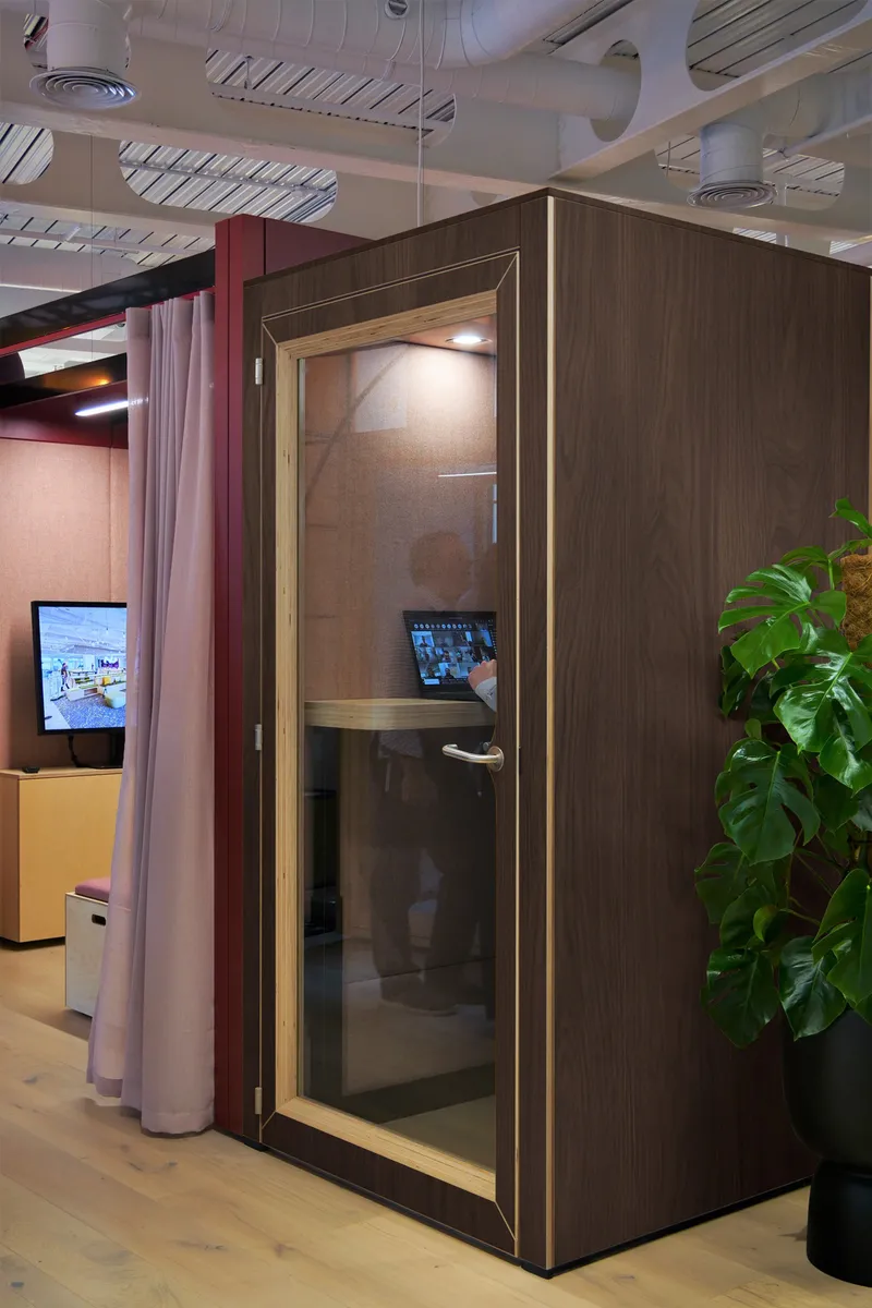 An individual working pod designed with a high focus on user comfort, acoustics and sustainability