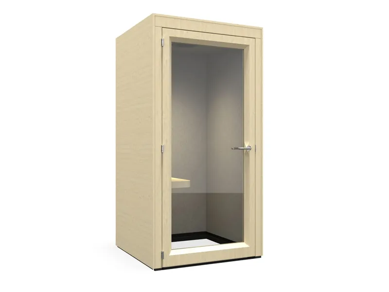 Whether you're in need of a solitary space for private conversation or high focus working, the modern workspace has provided little facility for this in the past, with a greater emphasis on open-plan collaborative and social zones, rather than individual spaces for quiet and uninterrupted working environments. In the past, one person may have claimed a whole meeting room to take a phone call or hold a private conversation; an inefficient use of space. Drawing on the rich design heritage of California, Residence Max creates iconic enclosures within the workplace, providing an optimum working experience and a serene sanctuary amidst the current workplace conditions and high-tech buzz of the modern environment. Inspired by the beautiful 'residences', modern, innovative houses built by leading architects throughout the 20th century, this space-efficient pod provides private space using minimum floor area. The product comes with a glazed door, allowing natural light to continue to shine through and a birch plywood finish, providing a raw, natural aesthetic. Available with either a height-adjustable or fixed desk in a seated or standing working position, adjustable ventilation and built-in power, Residence Max is designed to be comfortable for longer working hours. The product boasts extremely high acoustic quality and has a highly adaptable design with a huge range of finish options. Residence Max comes in two versions, Wellness and Wellness Plus, both of which are designed to be very sustainable, containing low emitting materials and designed to provide a high quality user experience.