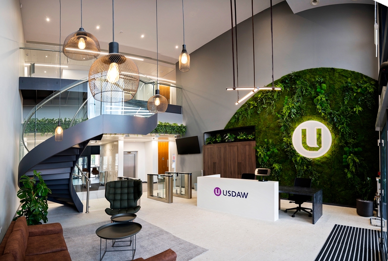 Maintaining the floral feel, the reception area adds further brand identity, establishing a serene and composed environment which fosters the comfortable but constructive vibe to be continued throughout the office. It is through this vibe that the company is able to grow and drive the industry it works in with a momentum born from technological pro-activity and unparalled talent.