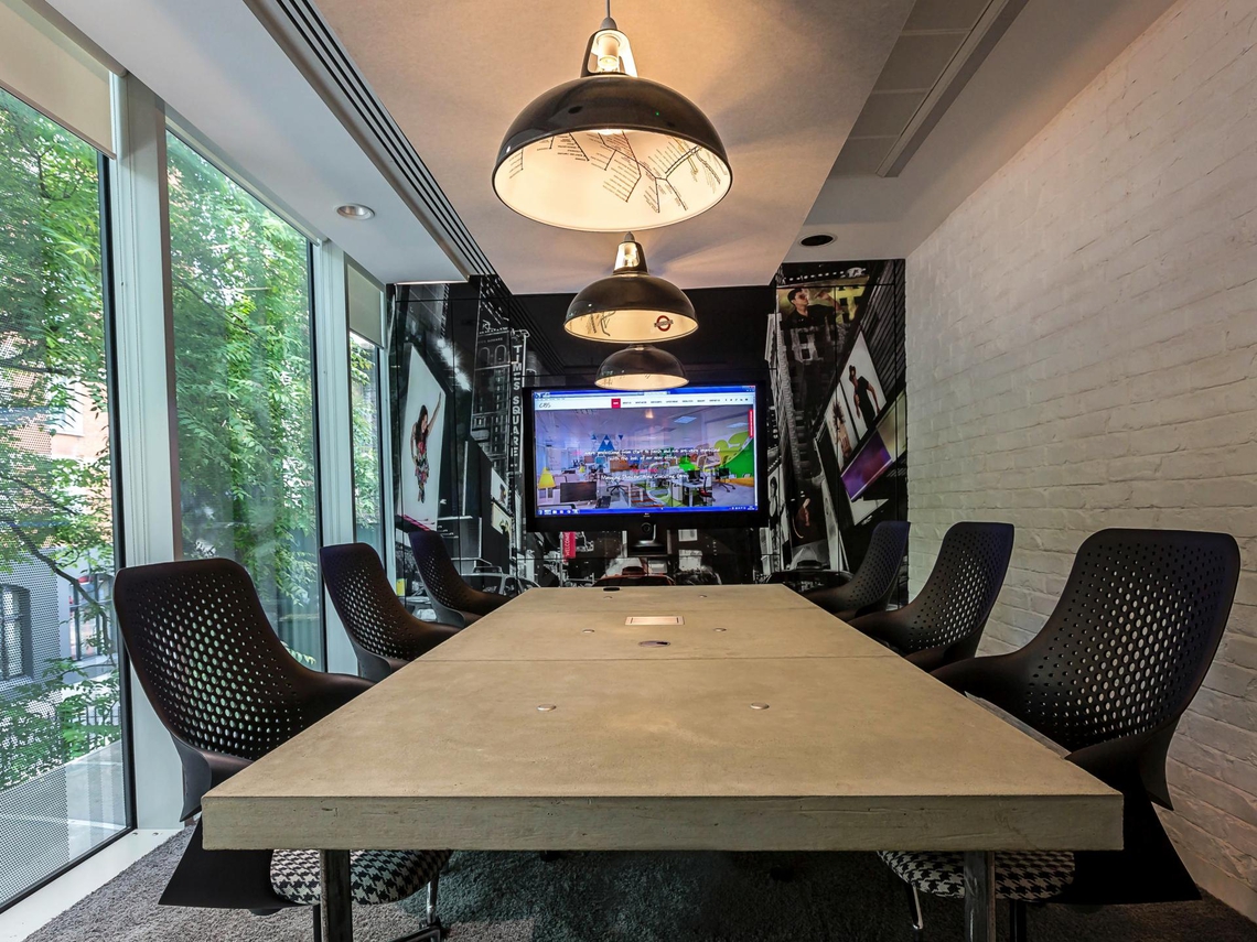 We provided our Mediastor product. A unique and customisable storage wall with creative city graphics used for presenting pitches, storage and more. Mediastor allows employees to hold meetings and presentations with an integrated screen, also supporting audio-visual hardware for video conferences too. All cables and hardware is discreetly contained within the design making this dynamic wall ideal for meeting rooms.