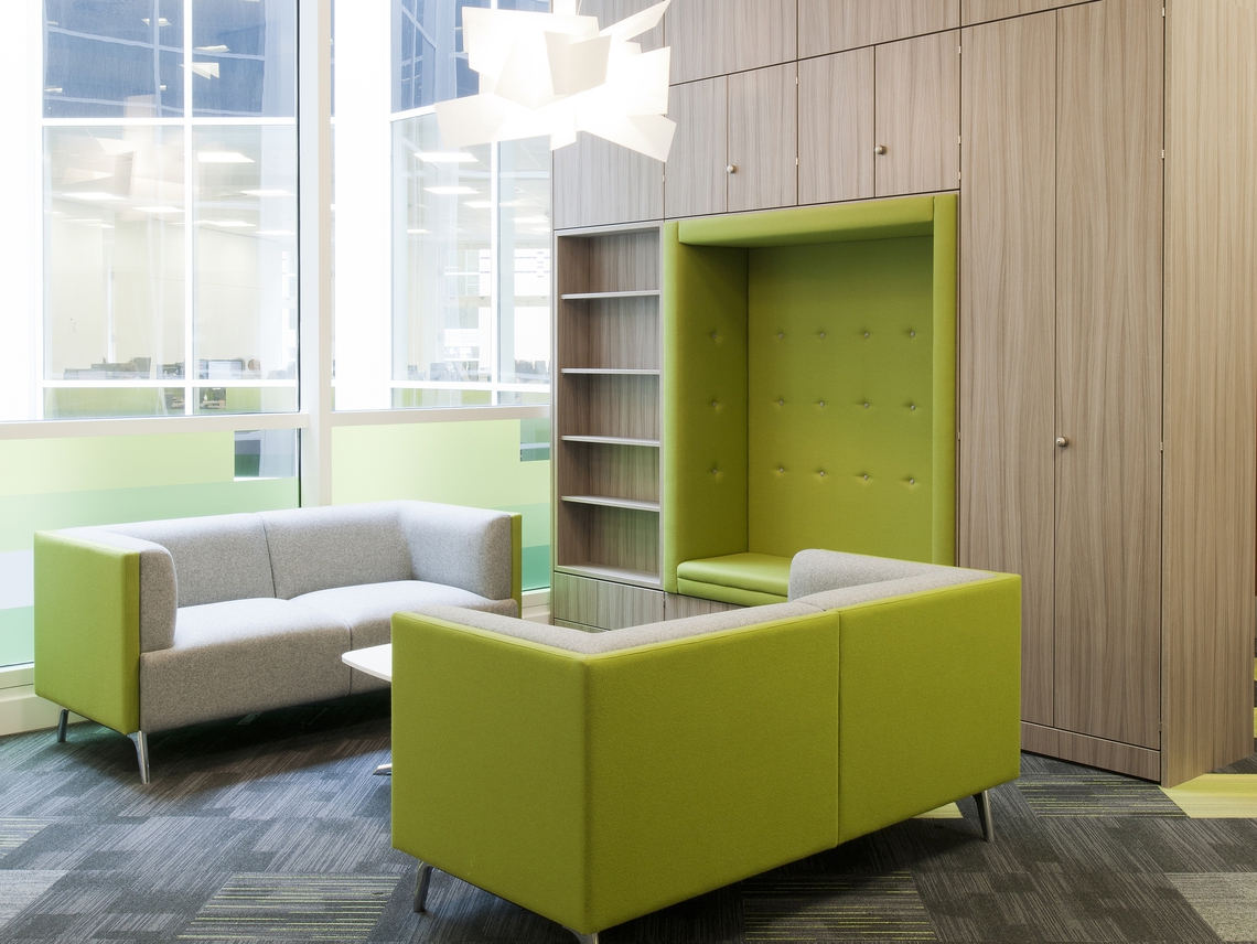 Having done a number of previous projects for this leading USA healthcare provider’s offices in Scotland and other UK locations, Spacestor were the obvious preferred supplier for their 33,000 sq ft office relocation to the landmark Grosvenor building in Glasgow. Working in close partnership with the design team, Spacestor were able to deliver an ‘on budget’ solution incorporating some of the key collaboration pieces such as the Snugglestor unit on each of the 4 floors. For more information on Snugglestor and other linked products, please click here.