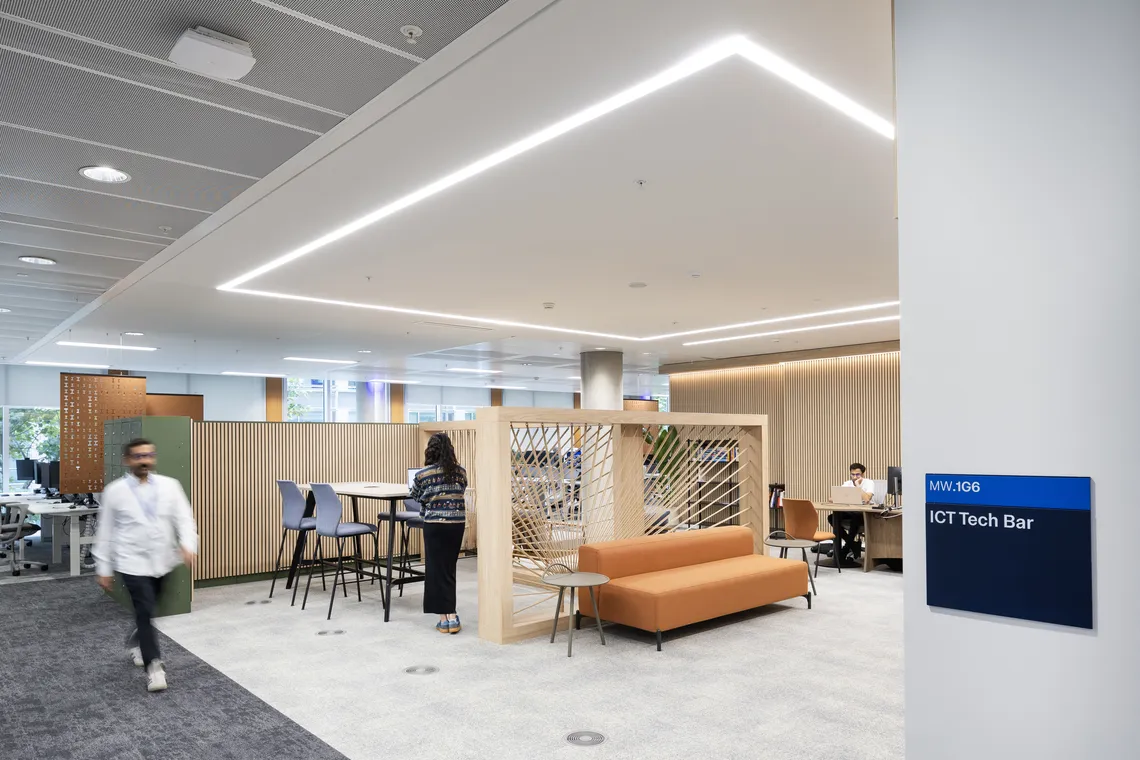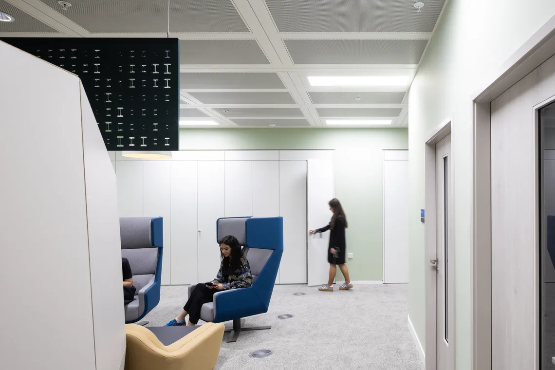 Through these integrated elements, the workplace combines wellbeing, flexibility, and inclusivity in a way that supports both individual focus and collective discovery — a setting that reflects Imperial College London’s position at the forefront of research and learning.
