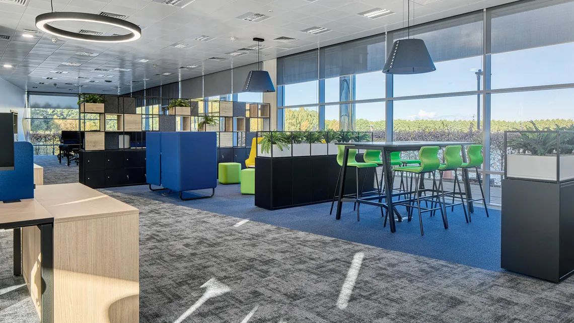 By creating various areas, including a new breakout space, the design offers flexibility to accommodate different ways of working and collaborating. Our Palisades II was chosen to provide an alternative to segregating the space without a physical wall, maintaining an open plan feel while allowing for additional storage. Careful selection of furniture was crucial to maximize the space's potential and achieve the desired inviting atmosphere conducive to both collaboration and focused work.