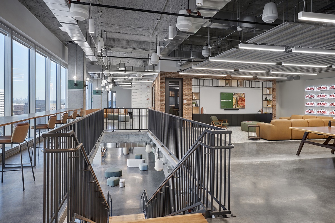 Papa Johns collaborated with IA Interior Architects to design a new headquarters that supports the client’s rebrand and invests in their future. A mix of open work environments offers optimized daylight and panoramic views, including focus rooms, flexible meeting rooms, and training areas. Unique spaces such as a full-size restaurant kitchen and research facility allow for new ideas to be tested on-site. As a reflection of the company’s commitment to research and development, these authentic features sit central to the office and foster an environment that engages employees and visitors in moments of connection and discovery.