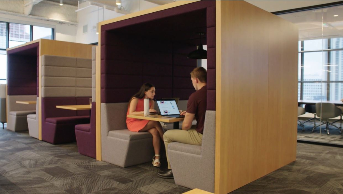 Demonstrating a vertical ecosystem, each floor of the space has been based around a different theme to represent what makes Boston audacious – neighbourhoods, sports, technology and innovation. The floors are connected by a impressive stairwell, which brings together a variety of different work settings, amenity hubs and meeting areas with signage and graphics. Spacestor were pleased to be involved in the creation of this spectacular workspace, providing our Railway Carriage meeting pods to facilitate collaborative and private working.
