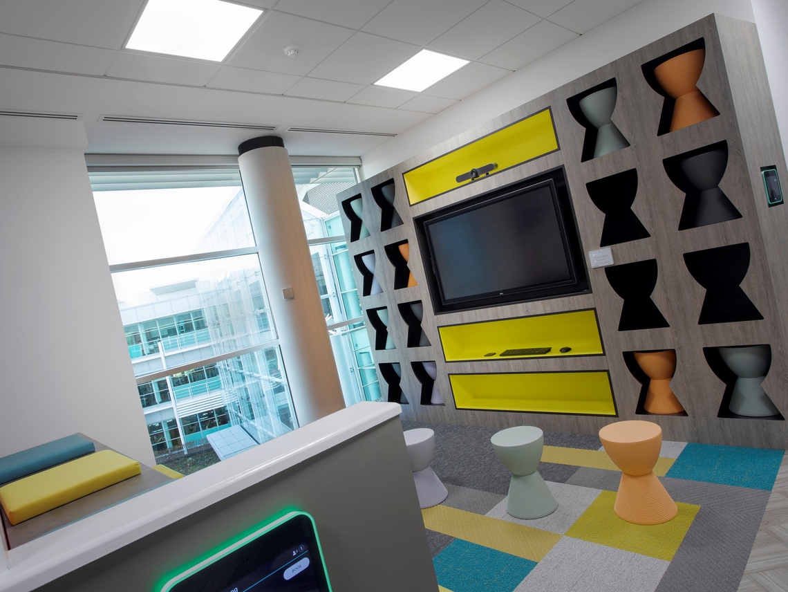 As one of the nation’s leading housebuilders, Taylor Wimpey are experts in creating great spaces. Their new location houses both their Training Centre and their IT Services team, and has been designed by Claremont with openness, playfulness, collaboration and conviviality in mind; we’re delighted to see our Palisades Grid used so prominently.