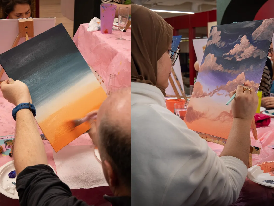 Led by expert artists, Ellie and Jae from Brush & Bubbles, guests took part in a step-by-step painting workshop to create their own version of a masterpiece. A highlight of the event, the workshop showed participants the way but still allowed for each guest’s unique personality and creativity to shine through. A peaceful, charming atmosphere, with overhead biophilia and accompanying music developed the perfect setting for creativity flourish.