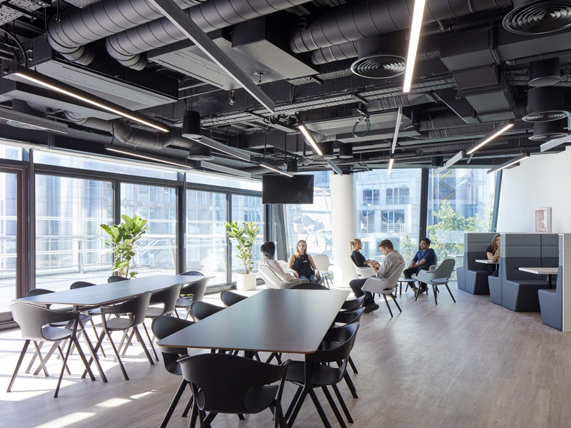 With 360-degree views, custom acoustic ceiling panels and a donut-shaped floor plan using workstation pods to maintain openness whilst defining the space, each floor of this workspace has a destination break area and intentional programming to encourage Checkr's teams to circulate freely and often between floors.