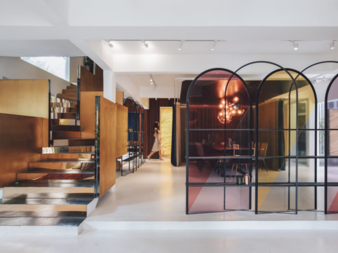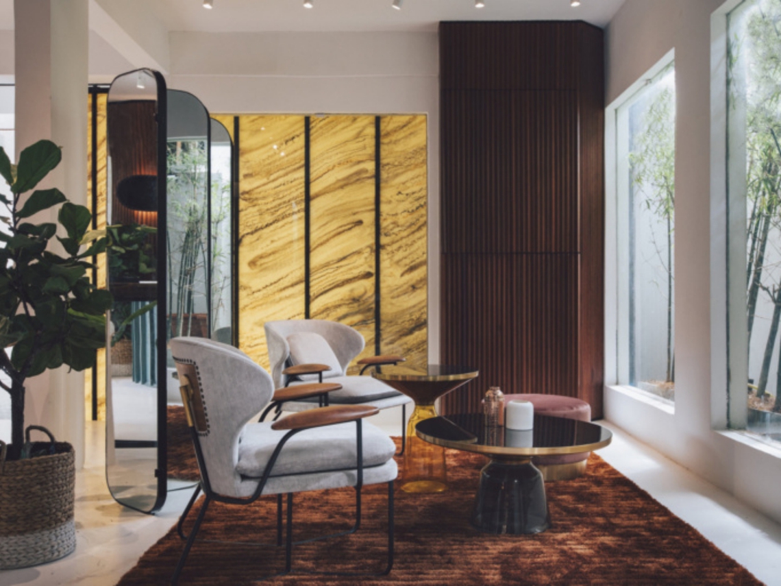 Les deux niveaux supérieurs du bâtiment sont ostensiblement coulés dans des panneaux en alliage brillant d'or et de cuivre ce qui donne un salon spacieux une fois fermés, dissimulé derrière les hauts panneaux rideaux de verre. Les bureaux profitent d'être généreusement arrosés de lumière naturelle et la terrasse extérieure verte complète l'élégant intérieur de l'ensemble. En explorant diverses configurations de volume et d'espace de façon créative dans tout le design, les designers ont réussi à composer une série d'espaces de travail et de loisirs qui s'entremêlent sans effort les uns avec les autres.