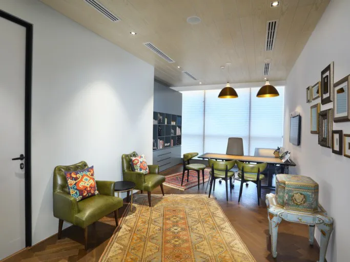 Une variété de visuels adéquats a aussi été intégrée en jouant avec des nuances contrastées. Certains quartiers ont confortables et modernes avec des canapés et des fauteuils blanc moelleux alors que, par contraste, d'autres quartiers offrent une ambiance antique avec des chaises vert olive rétro, des tapis tissés et des détails vieillis.