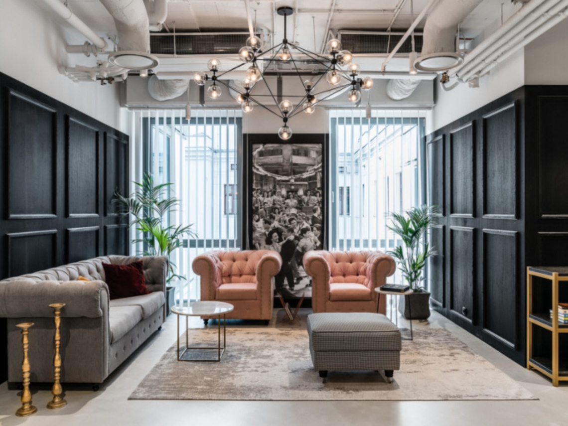 At the core of the design, is a classic and timeless combination of white, black and grey. This has been enriched with bolder colours throughout the space, combined with various fabrics, paintings and carpets. Muntins were added to glazing and doors, and the walls have been finished with stuccoworks, all of which differentiates the offices from other typical co-working spaces.