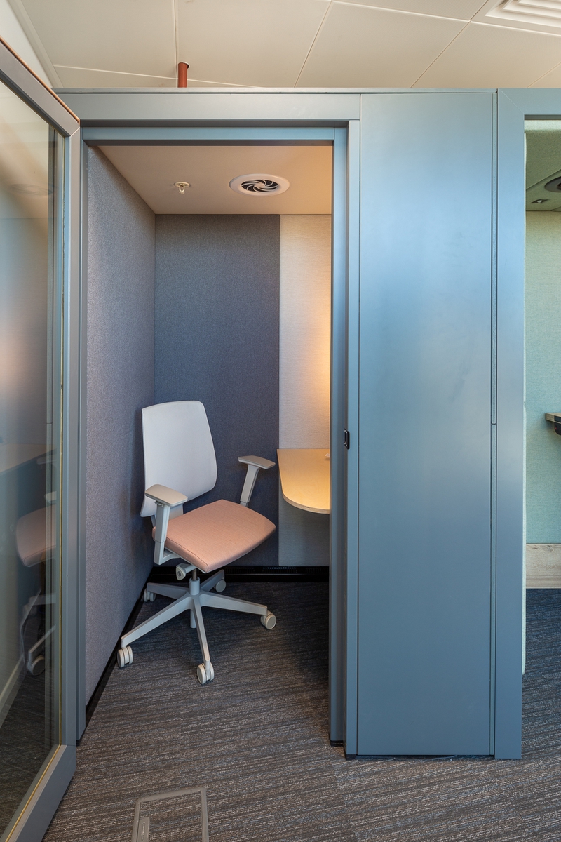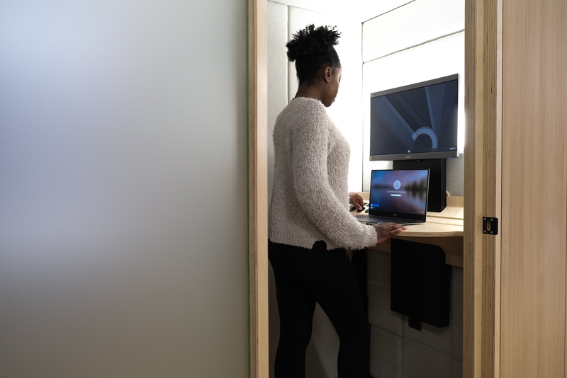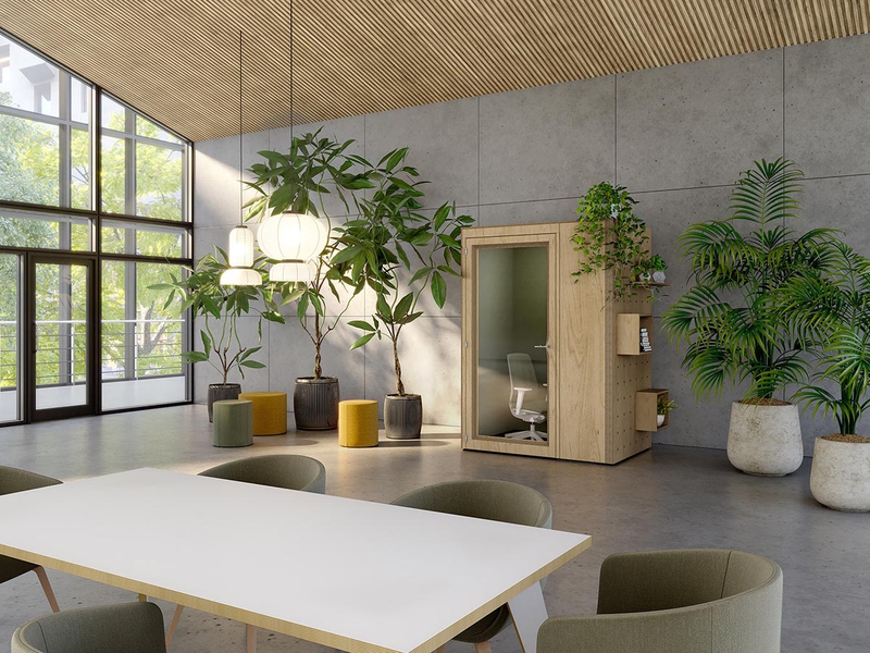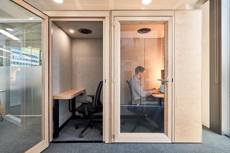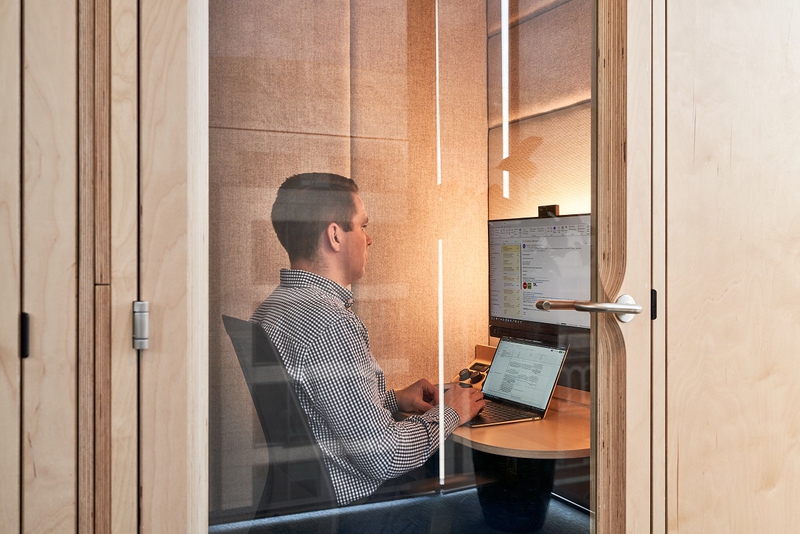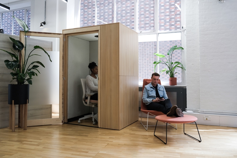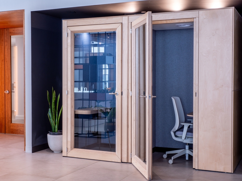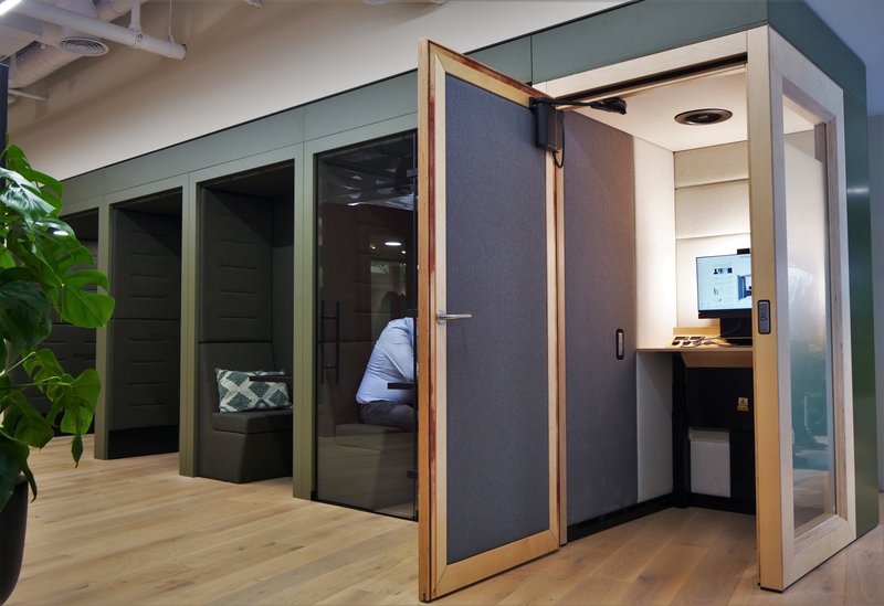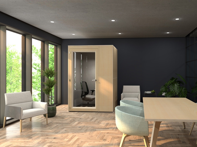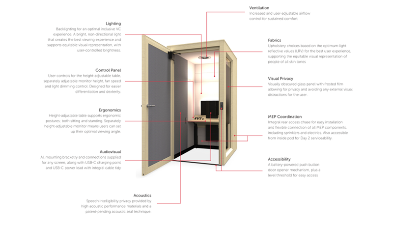 Only hearing half of a conversation is proven to be far more distracting than a dialogue between two people. This is because our brains constantly try to predict the inaudible other half of the conversation, hindering our ability to focus. It’s not uncommon to see a whole meeting room in use for a video conversation, whilst this removes distractions from the open space, the misuse of a large meeting room reduces the spatial capacity for face-to-face collaboration in the workspace. A sound-proof pod is a perfect, space-efficient solution to this growing trend. However, most pods have primarily been designed for quiet focus work. A pod designed for communication is quite different. Not only does the acoustic quality of the pod need to be optimized, but so do the finishes of the interior, support the visual representation of all people on camera, regardless of skin tone and clothing choice.