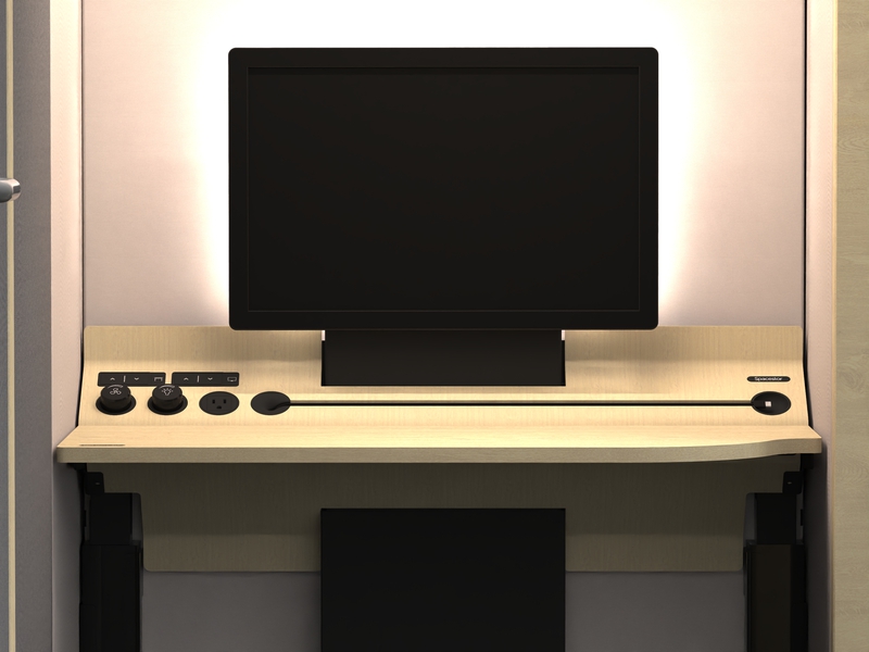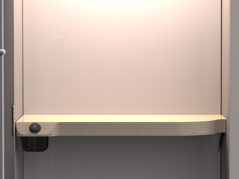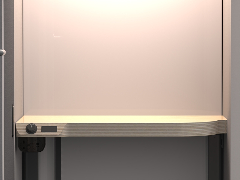 The easy-to-use buttons and knobs, make the pod intuitive to personalise. Lighting, ventilation, desk height and screen height can all be adjusted at the press of a button to create a tailored environment suited to your needs.