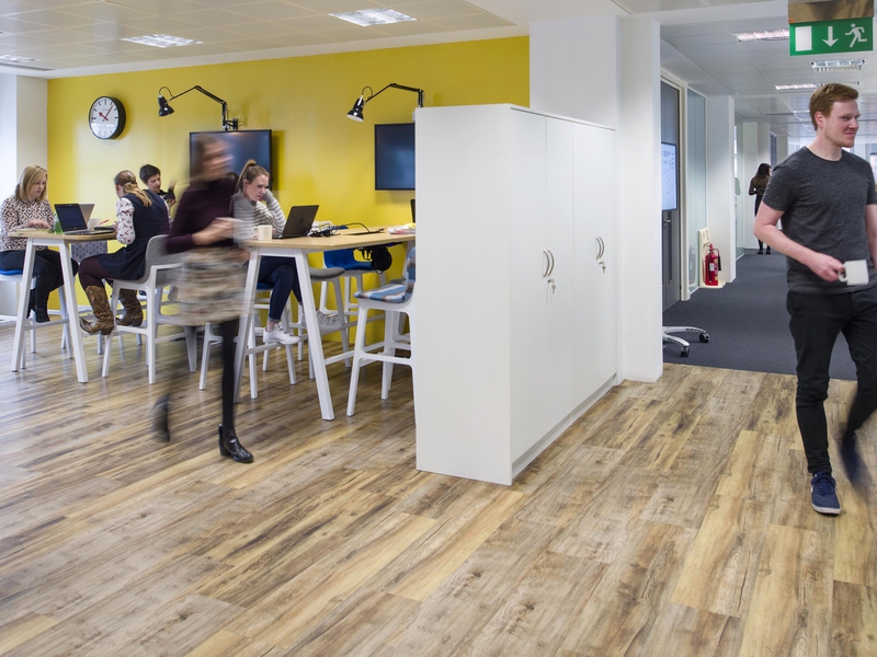 Un environnement clair favorisant l'esprit créatif et la libre circulation des idées pour les bureaux de SAGE Publishing.