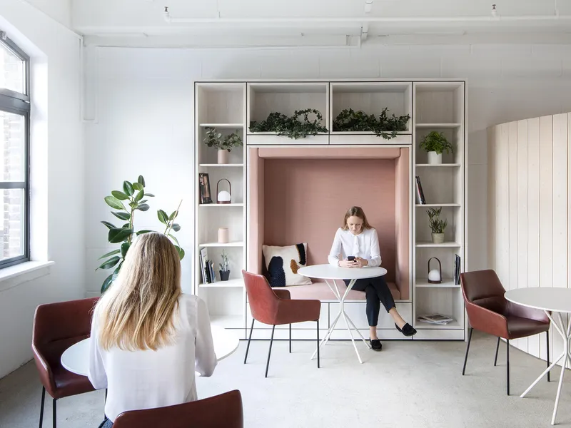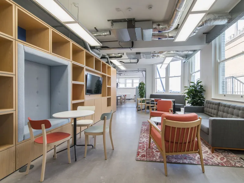 Un intérieur frais pour une start-up londonienne, Hiber, qui aide à rendre les domiciles plus confortables et économes en énergie dans un espace confortable, accueillant et biologique.
