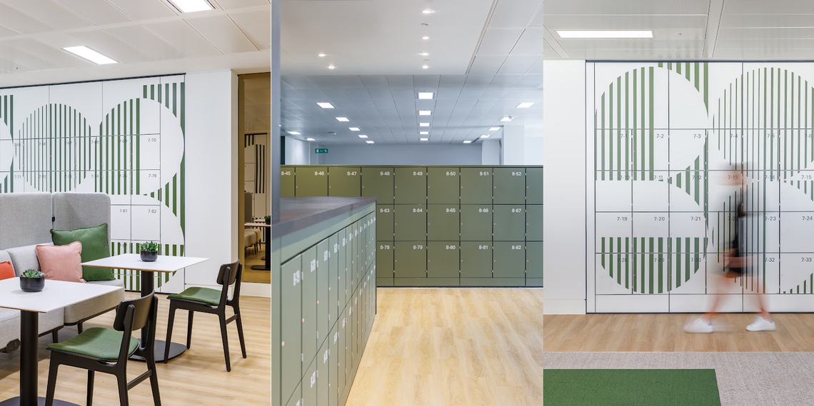 Anchorpoint and their client also worked with Spacestor to deciding on their locker strategy for the location. HotLocker banks were installed, seamlessly integrating with the building’s access system, allowing employees to tap in and claim their locker upon arrival with an RFID locking system. This offers employees secure, personal storage, whilst blending seamlessly into the design scheme reinforcing brand identity with custom graphics adhered to the face.