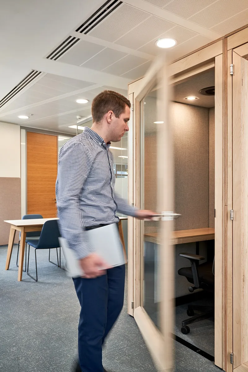Guiding their clients through legal challenges and rewarding opportunities, this International Legal Firm puts people at the center of their proceedings. Their office in Farringdon is a hub for employees, where their needs are provided for, and consideration has been put into zone creation – whether in the main office space, enclosed meeting spaces or individual pods.
