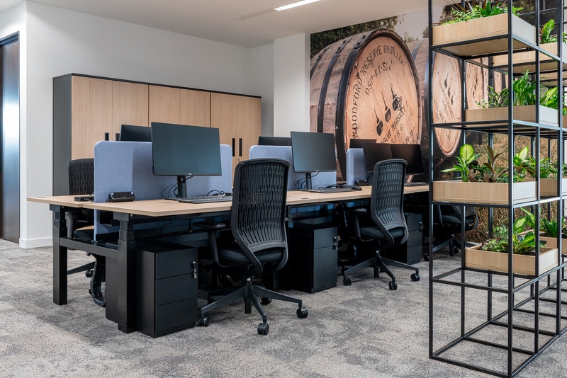 The first floor holds the primary functional spaces including the spacious reception, collaboration and meeting spaces, as well as bench desking workstations in the open office. Working with Workplace Resource Colorado, we provided our Palisades Grid to create visual and acoustic divisions between the different neighbourhoods within the office. Providing the needed levels of privacy between the focused workstations, and the more relaxed breakout areas, the Palisades Grid still allows connection between the spaces to flow, as well as natural light to filter through. As testament to this well-executed design, the workspace has been awarded the 'Office Tenant Improvement Project of the Year' (more than 60k sqft) at the prestigious Arizona NAIOP Awards in May 2021. And not only this award, but also the RED Award for Office Interior of the Year!