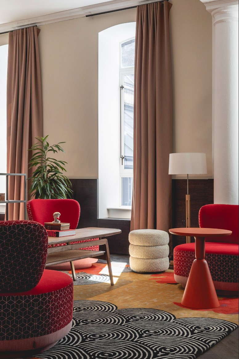 Collaboration with Totzke and Gensler developed customized rugs to add intrigue and artistic enhancement to many of the breakout and collaboration vignettes. The social reach of this collaboration helps to fund the education initiative of Project Mala, a movement which aims to abolish child labour in the hand-knotted carpet industry in India, providing education, daily meals, and healthcare for the children.