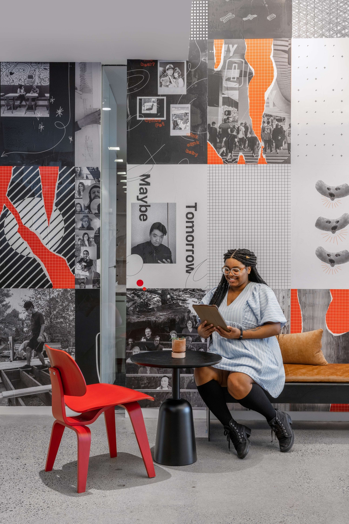 A color palette of cool and earthy hues reflects a true Pacific Northwest vibe, while the Gensler brand is visible throughout – embedded in the experience across an inclusive, playful, and sustainable environmental graphics and signage program. The bright and airy space is complemented by meeting, lounge, and personal-sized areas offering lower lighting levels to provide choice for a variety of preferences, key for the neurodiversity of the staff.