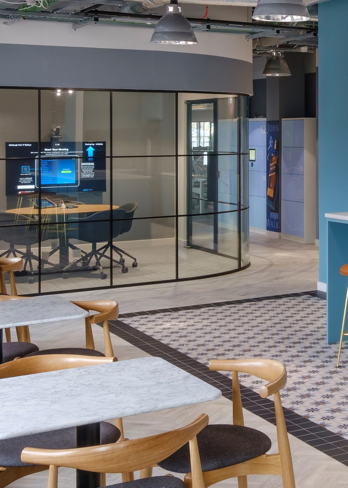 As part of this human-centric design, we were pleased to work with Source Developments to provide our tech-enabled, employee storage solution, HotLocker Agile system. In multiple banks over the three floors, the agile locker system allows the employees to assign themselves a locker each day, without needing to be tied to the same locker, at the same bank, or even on the same level, every day! The bespoke feel of the workplace continues on the lockers with the client choosing the colours, doors numbering and graphics that spread across the banks.