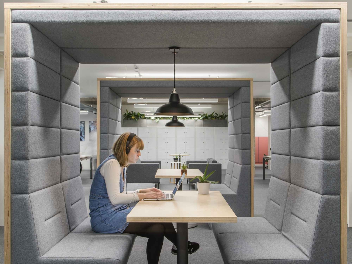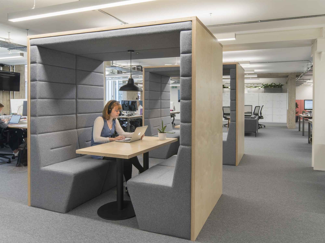 "Une des principales inspirations à l'origine de ce design de bureaux", expliquent les designers de Pelton Rose, "était le concept de confiance, une valeur importante que GoCardless favorise parmi tout son personnel." Pour cela, ils ont construit un espace de travail qui correspond à une large palette de styles de travail différents et ont réparti des micro-environnements flexibles sur les trois niveaux. Nous avons installé quelques uns de nos postes de réunion Railway Carriage pour le personnel qui désire travailler à l'écart de leurs bureaux et en accord avec ce thème d'ouverture et de confiance, nous les avons laissés ouverts et placés au centre de la pièce.