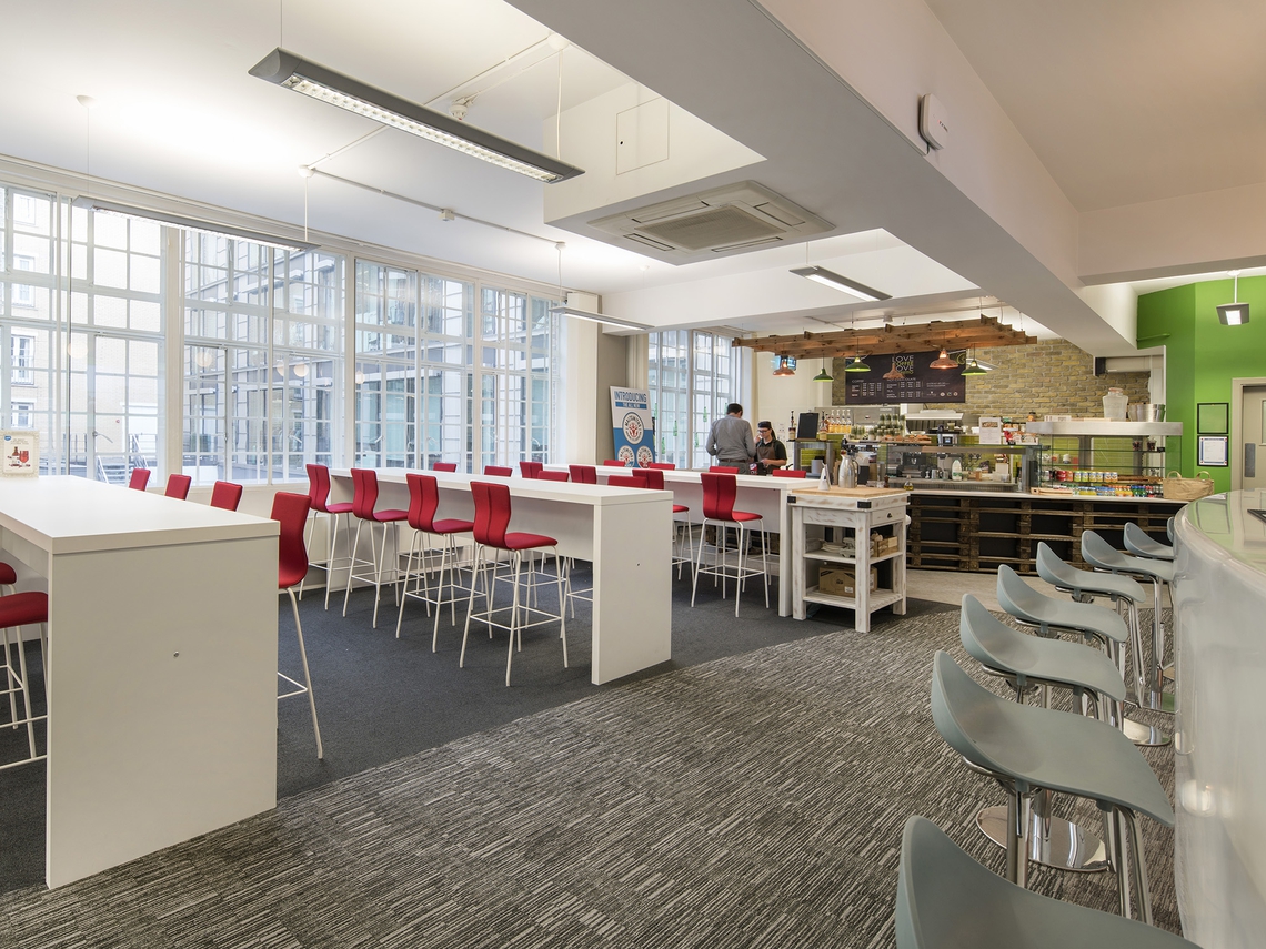 Un espace social interactif au design flexible qui offre un large choix d'espaces de travail agréables adaptés au style de chacun.