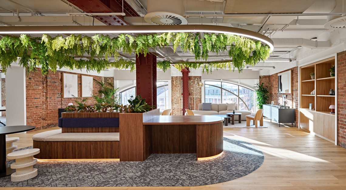 A number of features placed in the project to enhance the mental and physical well-being of employees are throughout. Biophilia is prevalent, and the curated reception area has a lighting and biophilia-incorporated feature which gives the sensory cue immediately, that this space is designed in a way that is calm and collected, for everyone’s wellbeing and enjoyment at work. Natural light from the large oval-shaped windows has been used, and bold lines in the design are carried throughout. The views out of these windows are iconic, and a skyline view out one way shows many of the city’s landmarks.