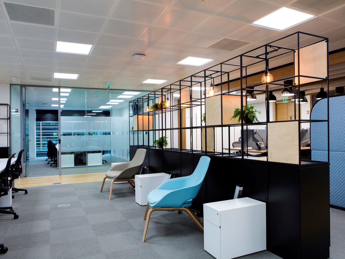 Une société financière importante a récemment déménagé dans son nouveau siège social à Dublin collaborant avec Walls to Workstations pour créer un espace qui combine à la fois un open-space, une zone de détente et des zones de travail individuelles.