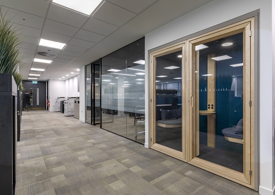 Dedicated quiet spaces are a necessity within the high-tech buzz of the modern working environment. Sometimes employees just need to be alone, or find a quiet meeting space. Our single user pod from the Residence range was placed conveniently near to the rows of task desking, it allows people to find a quiet individual space either for focussed work, or a meeting with one other person. The birch plywood finish provides a raw, natural aesthetic contributing towards the need for a sanctuary. Find out more from the Lead Creative, Michelle Carr at Habit Action, about the creative project journey and turning this vision into reality!