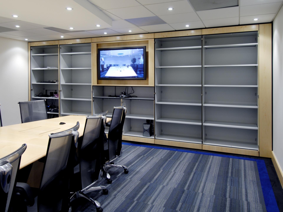 Des modules interconnectés fournissent un stockage avec des installations de vidéo et de téléconférence discrètement incorporées. Pour ce projet, nous avons fourni un stockage pour un fabricant important de produits de communication sans fil. Ils voulaient intégrer discrètement des installations de vidéo et téléconférence dans les systèmes de stockage.