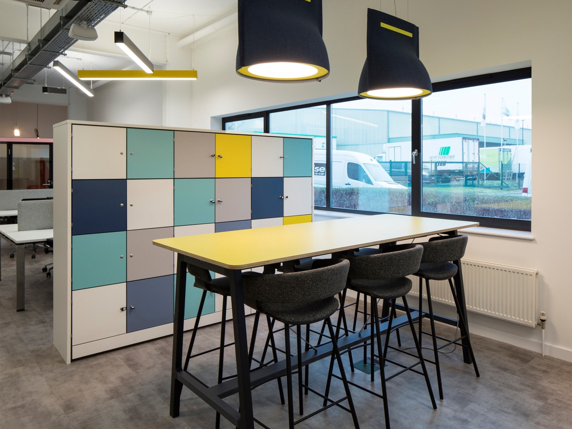 En tant que groupe de marques de nourriture, boissons et voyages offrant une diversité de services, le nouveau siège social de The Proper Food & Drinks Company devait être à la fois aussi accueillant et aussi flexible que possible. Hunts Office Furniture a été engagé pour le projet et s'est décidé pour une approche orientée sur le design intégrant quatre de nos produits les plus élégants : notre système d'étagères Palisades Grid, notre assise en alcôve Snugglestor (ici laissée ouverte des deux côtés comme une douce fenêtre) et nos casiers HotLocker.