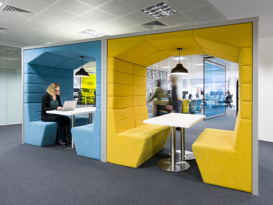 Nous avons installé des Railway carriages deux places et des Phonebooths une place pour créer des espaces de travail intimes et réservés offrant une tranquillité supplémentaire et permettant la concentration, des HotLockers pour que le personnel stocke ses affaires alors qu'ils se déplace dans les bureaux et une variété d'étagères et de modules de stockage qui permettent de conserver des bureaux aérés, rangés et clairs.