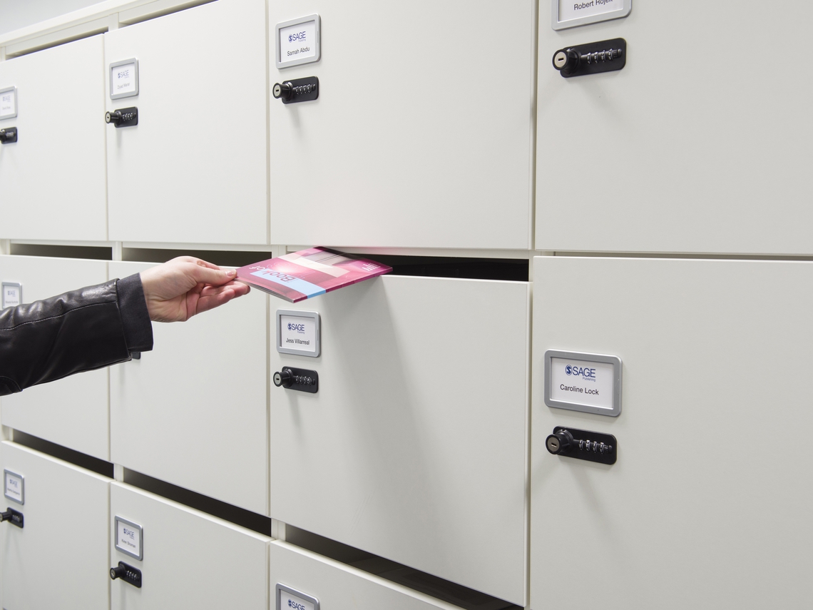 Comme vous pouvez le voir, SAGE Publishing voulait que leurs bureaux demeurent ouverts et favorisent l'inspiration ainsi The Interior Works a utilisés nos éléments, casiers et étagères pour diviser la pièce sans arrêter la lumière. De même, nos Railway Carriages à côtés ouverts permettent de laisser circuler la lumière et l'air, le tout produisant un environnement attrayant qui favorise un esprit créatif et la libre circulation des idées.