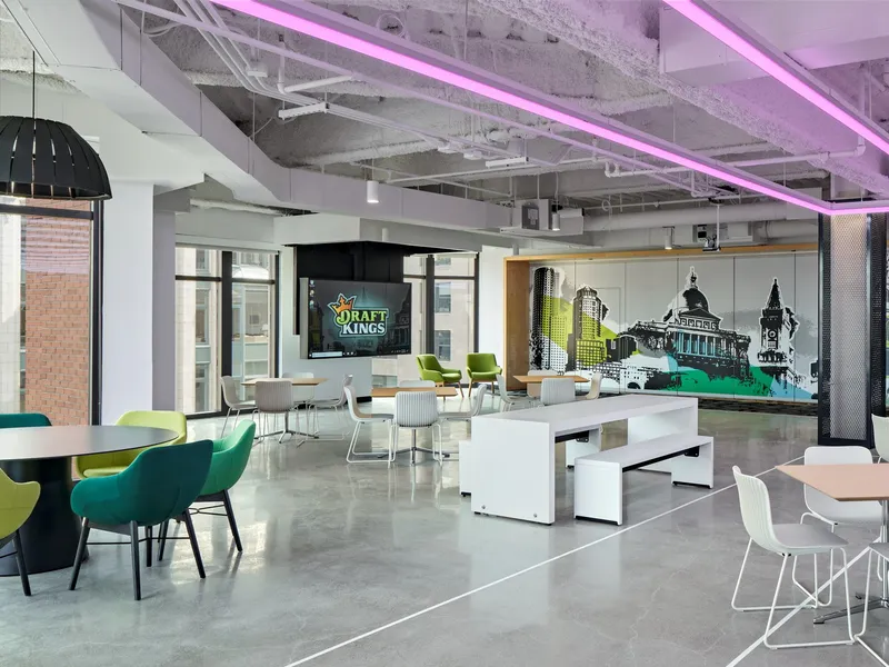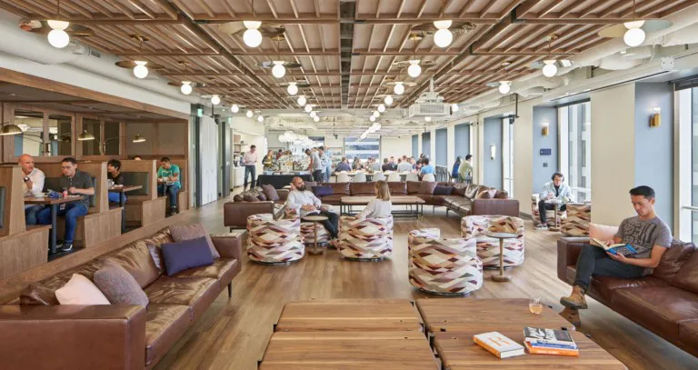 With 360-degree views, custom acoustic ceiling panels and a donut-shaped floor plan using workstation pods to maintain openness whilst defining the space, each floor of this workspace has a destination break area and intentional programming to encourage Checkr's teams to circulate freely and often between floors.