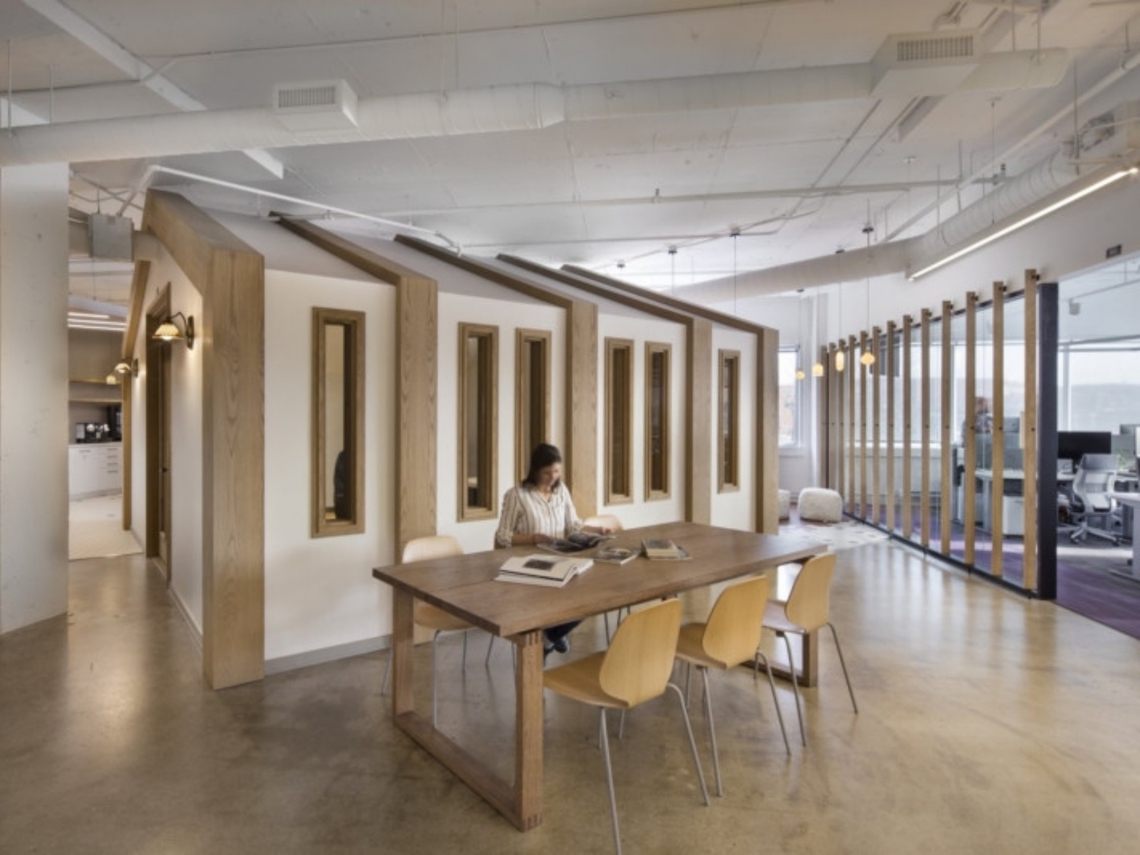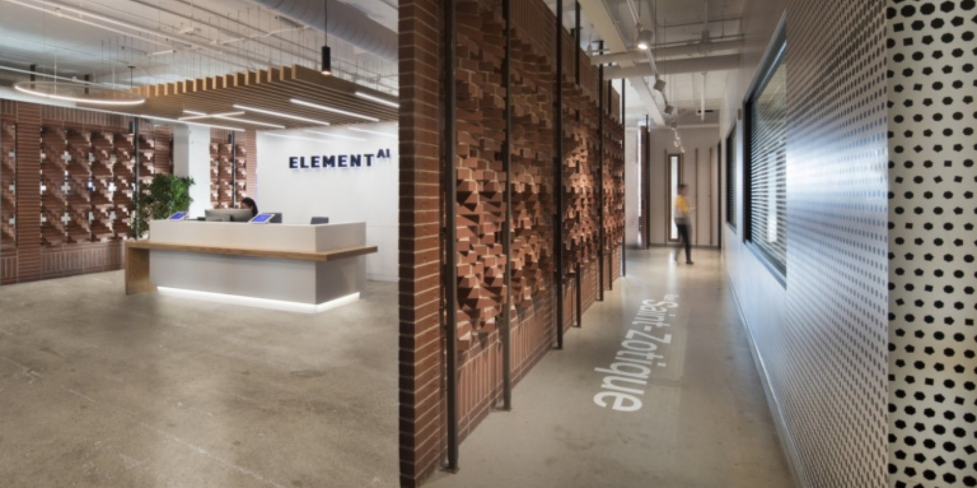 Software company Element AI have recently moved into their new 65,000 square ft office in Montreal, Canada. Designed around 3 themes: Montreal, the democratization of artificial intelligence (AI), and the accommodation and support of Element AI's unique culture, the primary goal of this project was to demonstrate the contrast between humans and technology - turning human thoughts and ideas into computer intelligence.
