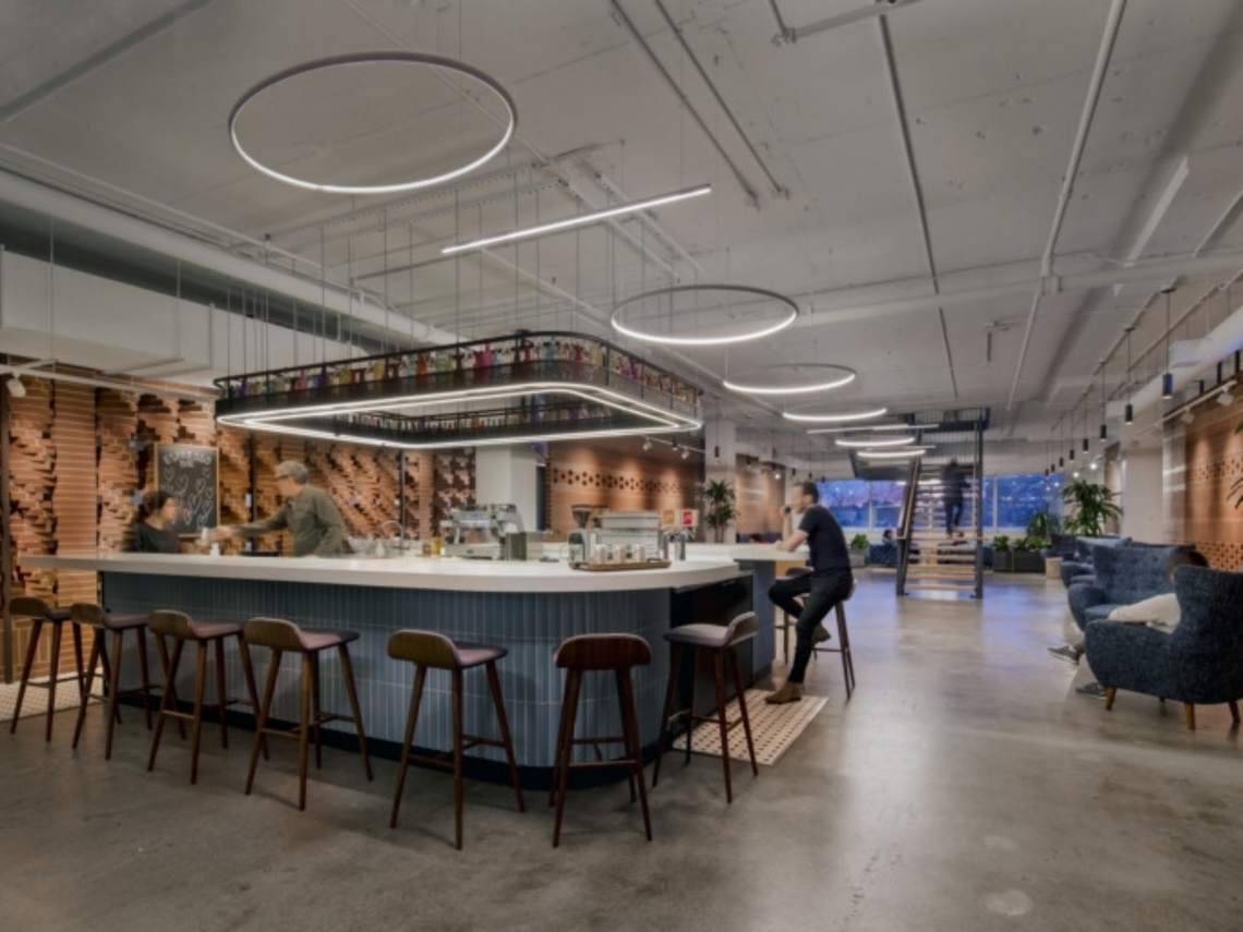 Also significant to the internal community of the office space, is the Espresso, Tea and Kombucha bar. Located away from the main Lounge, on Level 4, the objective was to genearate movement through the two floors, creating "watering holes" to so create accidental encounters and spark discussions.