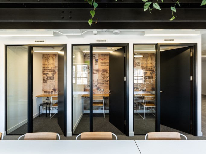 A bespoke graffiti mural in the workstation areas brings to life Fairtrade's brand messaging - that consumers have the power in their choices to make a difference every day. Just by their shopping choices, they can get farmers a better deal and help them to lead the dignified life everyone deserves. Meeting rooms feature bespoke wallpaper created by taking prints of authentic coffee sacks and glass partitions are detailed with geographical themed illustrations to represent the worldwide relationships that Fairtrade has formed.