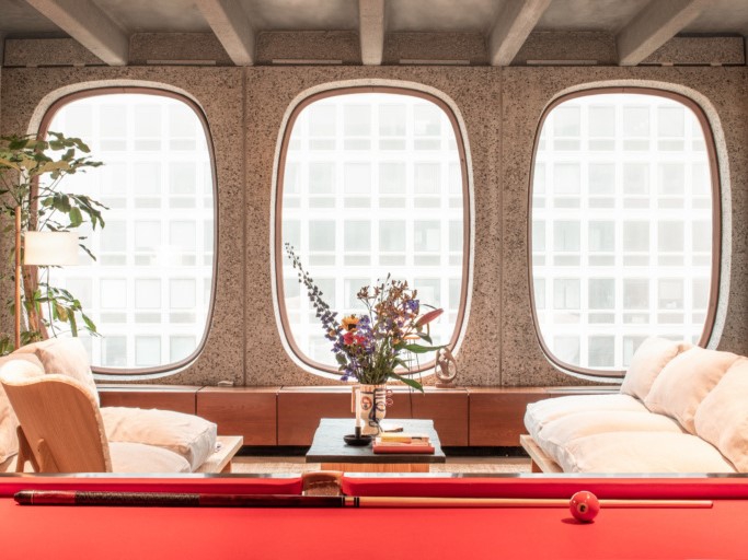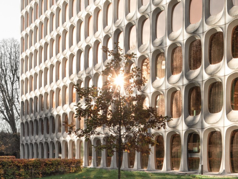 The nine-storey building has been constructed of 756 prefab convex oval concrete modules and its sculptural forms which are unusual for office buildings, sparked off a whole new wave in Belgium architecture. Fosbury & Sons founders were immediately attracted towards the remarkable building, exploring the incredibly detailed interior and surroundings.