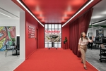 Aligning program areas with the column grid takes advantage of the building’s strict orthogonality, a modular approach that ensures the most efficient use of space and provides future flexibility. Interlocking circulation loops, custom-designed supergraphics on the walls and glass conference walls, and sharply distinct flooring materials help with wayfinding. Each floor has its own color and graphic theme as well.