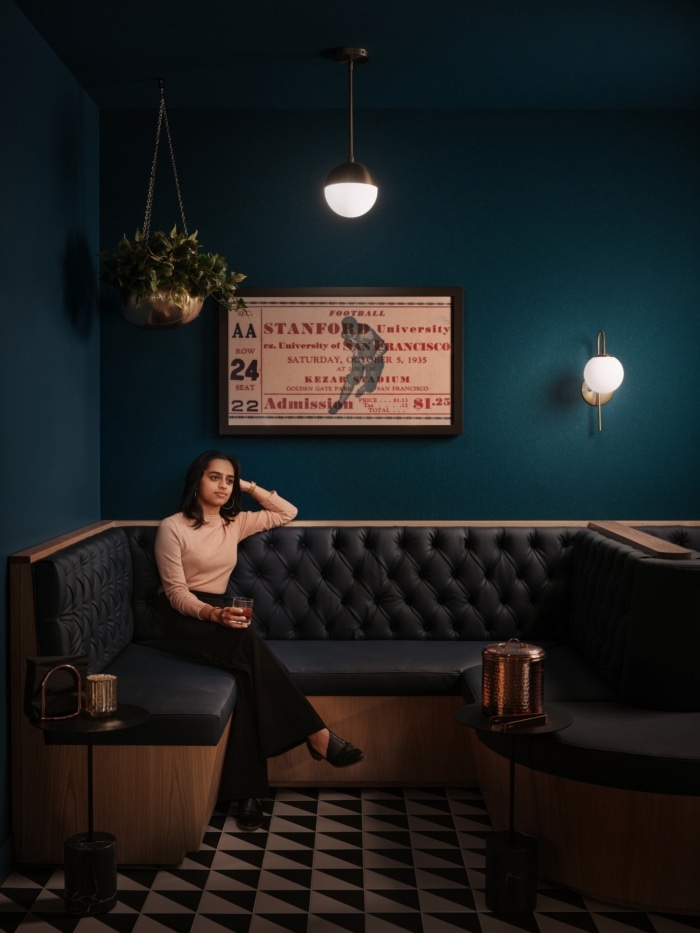 Recognizing the importance of company culture to Glassdoor, spaces for socialization and fun were also pivotal components of the design. Hidden within a phone room adjacent to a central hallway, is a door disguised as a wall that leads to the office Speakeasy. This warmly lit, secret room with dark finishes and traditional tin ceiling tiles provides a small bar for the office and a place where employees can disconnect from work and reconnect with each other.