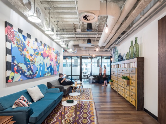 Playful wall murals, and a range of carefully-curated vintage furniture and artwork have been featured in the space, providing an engaging work environment.